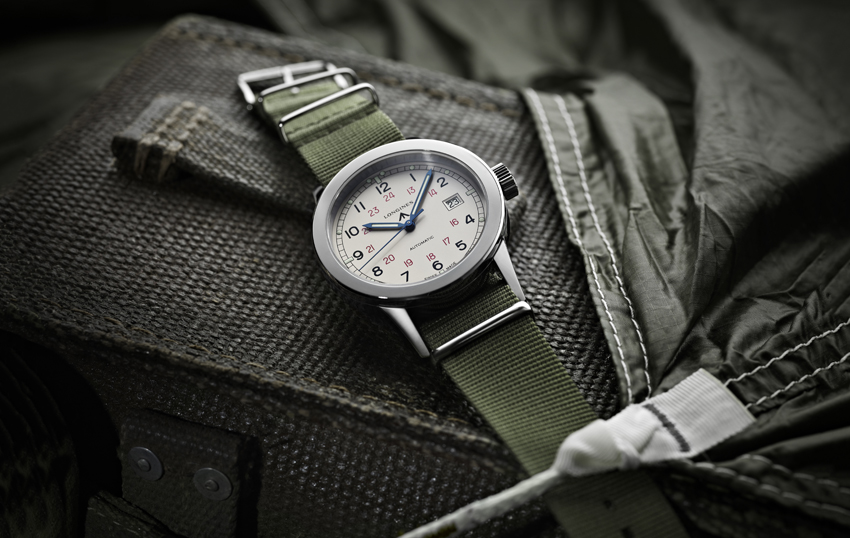 THE LONGINES HERITAGE MILITARY COSD est la digne héritière d’une montre créée pour les parachutistes de l’armée britannique dans les années 1940. Dans son boîtier en acier de 40 mm, elle abrite un calibre automatique L619.2. Le cadran simple et efficace blanc opalin affiche un tour d’heures en noir et une échelle 24 heures rouge rehaussée par des aiguilles bleuies. Date à 3 heures. Notez le signe distinctif « Broad arrow », symbolisant la propriété du gouvernement britannique. Toujours dans un esprit militaire, la Longines Heritage Military est équipé d’un bracelet NATO kaki. Également conçus pour l’armée britannique, ces bracelets légers et résistants avaient été créés dans le souci de répondre aux exigences des soldats. Elle est aussi disponible avec un bracelet en cuir noir.